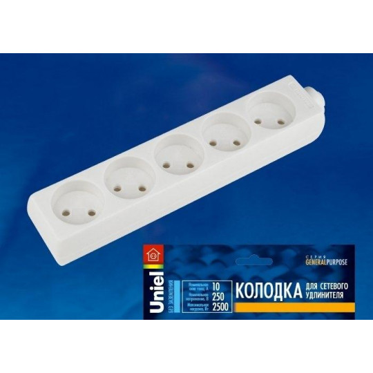КОЛОДКА 5МЕСТ 10А Б/З РОЗЕТОЧН БЕЛАЯ 2200ВТ K-CP5-10 (20) UNIEL - купить в универсальном интернет-магазине НОХТ