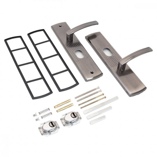 В комплект входят две ручки, винтовые стяжки, пластиковые прокладки и квадратный штырь (8х8 мм) 110 мм, комплекты стержней для автоматических и не автоматических замков.