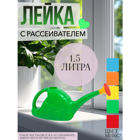 Лейка 1,5 литра для цветов создана для бережного полива в домашних условиях. Компактная и удобная, она станет незаменимой помощницей для выращивания цветов, рассады и зелени.