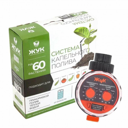 Используя капельный полив, вы навсегда забудете о тяжелых ведрах и лейках, время, которое раньше тратили на полив, можно будет проводить с близкими и друзьями. Если на вашем участке нет водопровода, не стоит расстраиваться. Набор Жук работает от любой имеющейся у вас емкости, подключить его не составит проблем. Вода в емкости будет комфортной температуры, это очень важное условие для теплолюбивых растений. С помощью специальных капельниц влага доставляется только к корням растений, за счет чего снижается рост сорняков, не образуется корка на поверхности почвы, растения получают воздух в достаточном количестве.
