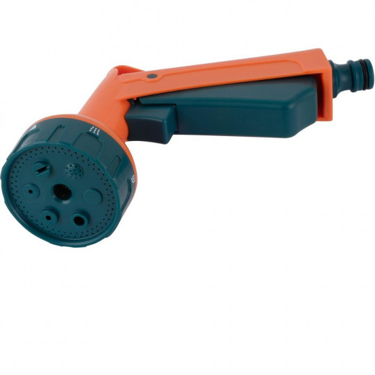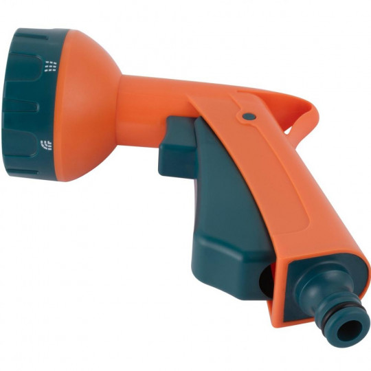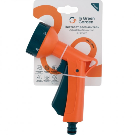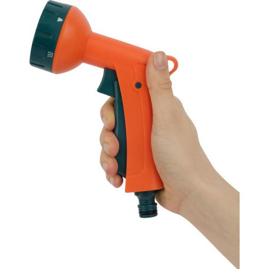 С одним инструментом вы получите 6 видов струи: от бережного режима для полива цветов до мощной струи для мытья твердых поверхностей. Фиксируемый курок снимает нагрузку с руки, позволяя пользоваться пистолетом-распылителем длительное время. Корпус выполнен из прочного пластика, который не боится падений, царапин и ежедневного воздействия ультрафиолета.