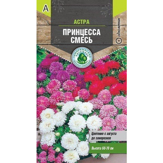 Астра Принцесса специальная смесь - однолетнее красивоцветущее декоративное растение. Максимальная высота до 80 см. Куст раскидистый, среднерослый. Листовые пластины светло-зеленого цвета. Цветет крупными разноцветными махровыми соцветиями. Соцветия полушаровидной формы. Данный сорт привлекает к себе внимание ярким и пышным цветением. Характеристики сорта: Посев семян: март-май, Период от посева до всходов: на 7-14 день, Продолжительность цветения: июль-сентябрь, Место: солнечный участок, полутень, Почва: легкая, питательная, плодородная, Температура проращивания: +18 +20 С, Применение в ландшафте: для создания клумб и сборных цветников, оформления бордюров и миксбордеров.