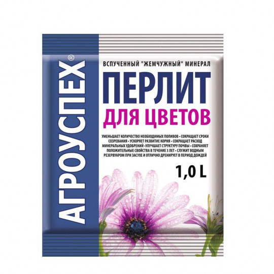ПЕРЛИТ ДЛЯ ЦВЕТОВ УМЕНЬШАЕТ КОЛИЧЕСТВО НЕОБХОДИМЫХ ПОЛИВОВ СОКРАЩАЕТ СРОКИ СОЗРЕВАНИЯ УСКОРЯЕТ РАЗВИТИЕ КОРНЯ СОКРАЩАЕТ РАСХОД МИНЕРАЛЬНЫХ УДОБРЕНИЙ УЛУЧШАЕТ СТРУКТУРУ ПОЧВЫ СОХРАНЯЕТ ПОЛОЖИТЕЛЬНЫЕ СВОЙСТВА В ТЕЧЕНИЕ 3 ЛЕТ СЛУЖИТ ВОДНЫМ РЕЗЕРВУАРОМ ПРИ ЗАСУХЕ И ОТЛИЧНО ДРЕНИРУЕТ В ПЕРИОД ДОЖДЕЙ