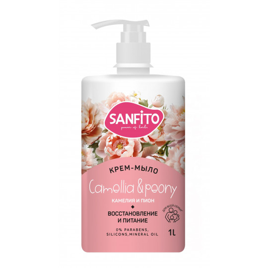 Мыло-крем sanfito камелия и пион восстановление и питание 1000мл СХЗ