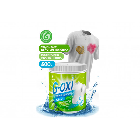 Пятновыводитель-отбеливатель G-Oxi для белых вещей с активным кислородом. Благодаря активному кислороду пятновыводитель-отбеливатель для белых и светлых тканей удаляет загрязнения различного происхождения, устраняет запахи и усиливает белизну, легко справляется с пятнами от травы, ягод, красного вина, сока, шоколада и др. Эффективен в широком диапазоне температур: от +30 до +90˚C. Подходит для автоматической и ручной стирки.