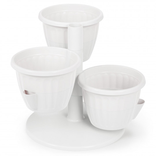 Горшок цветочный «Каскад» предназначен для выращивания различных растений в комнатных условиях. Он состоит из трех горшков с функцией прикорневого полива, установленных на одну платформу. Каждый горшок состоит из двух частей: в верхнюю высаживается растение, а нижняя часть используется как резервуар для воды. Вода заливается в специальный носик на боковой стенке. Каждый горшок имеет объем 0,7л. Изделие представлено в современных цветовых решениях, которые подходят к любому интерьеру.