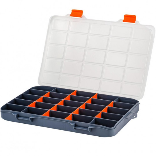 Органайзер для мелочей помогает содержать в порядке, переносить на место выполнения работ и быстро находить метизы и аксессуары. Идеален для использования дома, на даче, в гараже, мастерской, в автомобиле. Внутреннее деление на отсеки делает удобным размещение внутри органайзера деталей, которые необходимо отделить друг от друга. Съёмные перегородки позволяют изменять размер отсеков под личные нужды. Прозрачная крышка позволяет увидеть содержимое, не открывая органайзер. Имеется петля для подвеса. Благодаря плотно прилегающей крышке, исключающей смешивание содержимого, органайзер подходит для хранения самых мелких деталей, в том числе для рыболовных и швейных принадлежностей, коллекционирования, занятия хобби.