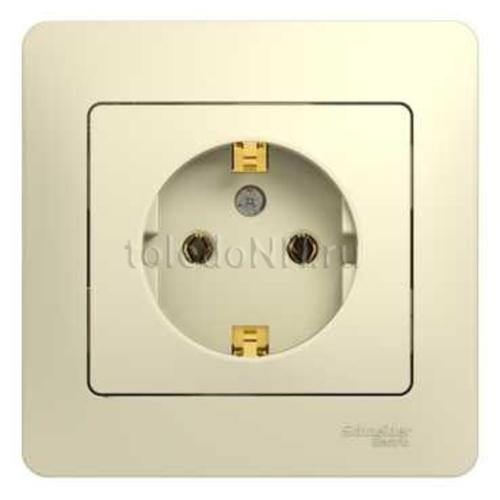Розетка одноместная GSL000244 бежевая с клеммой заземления с шторкой в сборе с рамкой