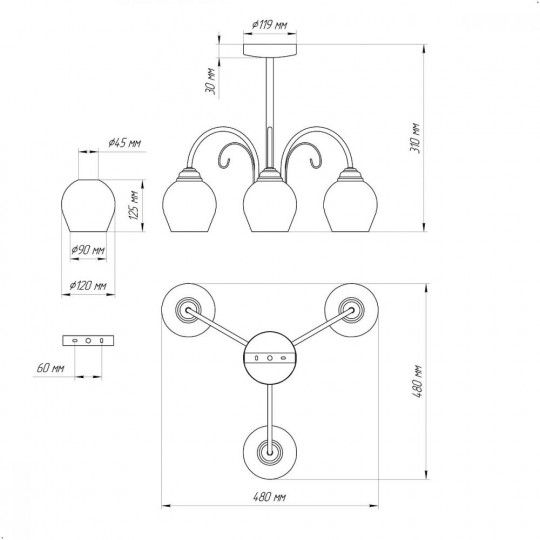 Изящные стеклянные плафоны создают мягкое освещение. Плафоны легко очищаются и сохраняют безупречный вид.