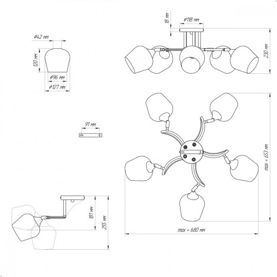 Изготовленная из стекла и металла, она обеспечивает яркое освещение благодаря стеклянным плафонам, которые мягко рассеивают свет от традиционных ламп накаливания до 60 Вт или экономичных светодиодных ламп до 15 Вт.
