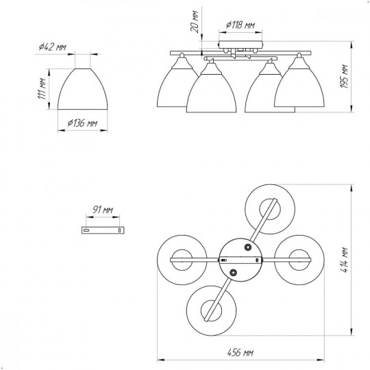 Изготовленная из стекла и металла, она обеспечивает яркое освещение благодаря стеклянным плафонам, которые мягко рассеивают свет от традиционных ламп накаливания до 60 Вт или экономичных светодиодных ламп до 15 Вт.