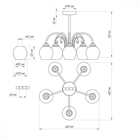 Оснащена простым креплением на планку, подходит для натяжных потолков.