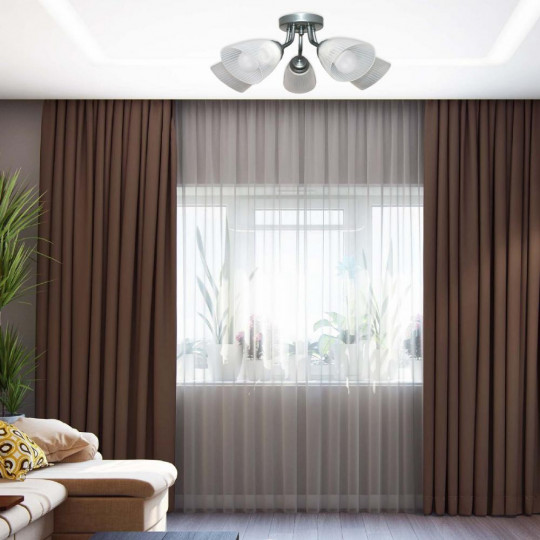 Люстра отлично подойдет для установки на низкий потолок комнаты, оформленной в современном стиле. Потолочная люстра с плафонами из пластика осветит помещение площадью 15 м2. Источник света - лампы накаливания с цоколем Е27, мощностью до 60 Вт, а также светодиодные лампы до 15 Вт. Узел крепления светильника на планку позволяет легко монтировать его на потолок, даже в случае устройства натяжного потолка. Модель произведена с использованием материалов: стекло и металл. Светильник дает максимум света, плафоны изготовлены из пластика. Плафоны легко моются и сохраняют свой безупречный внешний вид на протяжении всего срока эксплуатации.