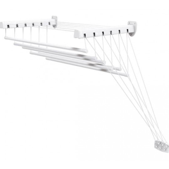 Настенная сушилка для белья позволяет свободно расположить большое количество белья, а также сэкономить свободное пространство в доме. Изделие можно установить на балконе или в ванной. В комплект изделия входят пластиковые кронштейны с роликами, которые крепятся к стене, металлические стержни в оплетке ПВХ (подвешиваются горизонтально), фиксирующая скоба (крепится в любом удобном месте стены)