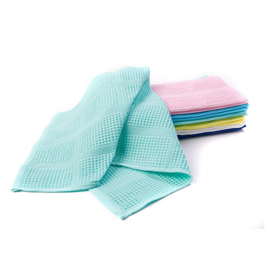 Полотенце вафельное для рук гладкокрашеное плотностью 300 гр/м2. Размер: 35х75 см. Рисунок образован чередой крупных и мелких ячеек. Состав: 100% хлопок. Производство: Узбекистан.
