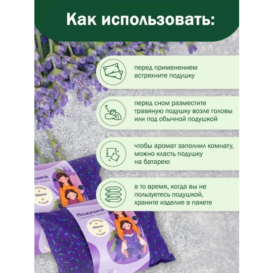 При постоянном использовании травяной подушки, мама будет быстро засыпать и просыпаться с хорошим настроением.