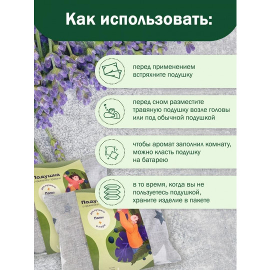 При постоянном использовании травяной подушки, папа будет быстро засыпать и просыпаться с хорошим настроением. Подушка нормализует сон, оказывает расслабляющее воздействие, поднимает настроение, снимает тревожность и головную боль, производит легкий массажный эффект.