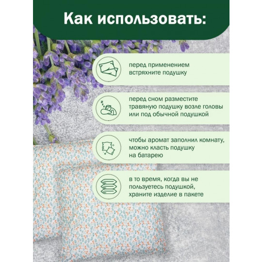 При постоянном использовании травяной подушки, вы будете быстро засыпать и просыпаться с хорошим настроением.