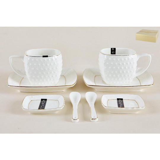 • Состав: чашка 240мл (2шт), блюдце (2шт), блюдце для варенья 10см (2шт), ложка (2шт)
