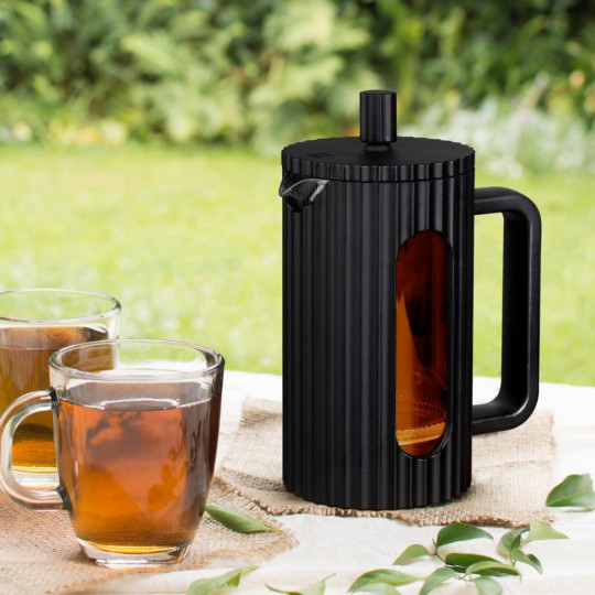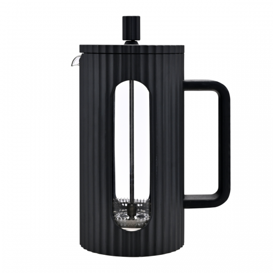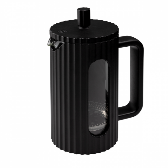 Материалы: жаропрочное боросиликатное стекло, высококачественная нержавеющая сталь, пищевой пластик. Колба выполнена из боросиликатного стекла, устойчивого к перепадам температур. Удобная ненагревающаяся ручка. Корпус выполнен из безопасного пищевого пластика (РР), цвет - черный, поверхность - матовая, поверхность корпуса и крышки - ребристая. Пресс выполнен из высококачественной нержавеющей стали. Разборная конструкция пресс-фильтра облегчает уход за изделием Стеклянная колба защищена надежным пластиковым корпусом, что обеспечивает практичное и безопасное использование посуды. Идеален для приготовления кофе, чая, тонизирующих и расслабляющих напитков.