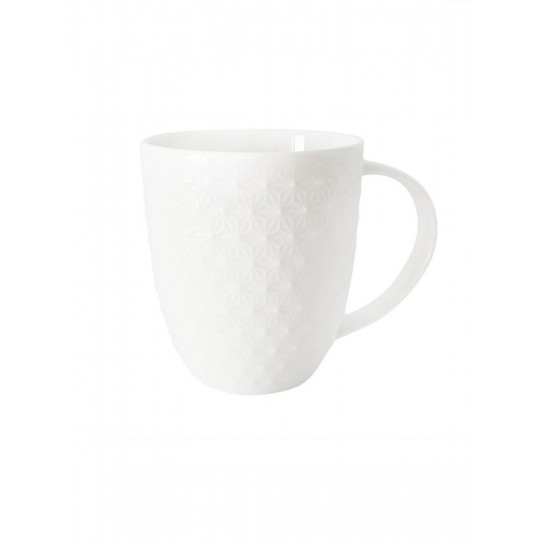 Кружка белая подходит для праздничной сервировки стола и повседневного использования. Лаконичный дизайн и рельефная поверхность эффектно смотрятся на столе. Кружка фарфоровая предназначена для холодных и горячих напитков.