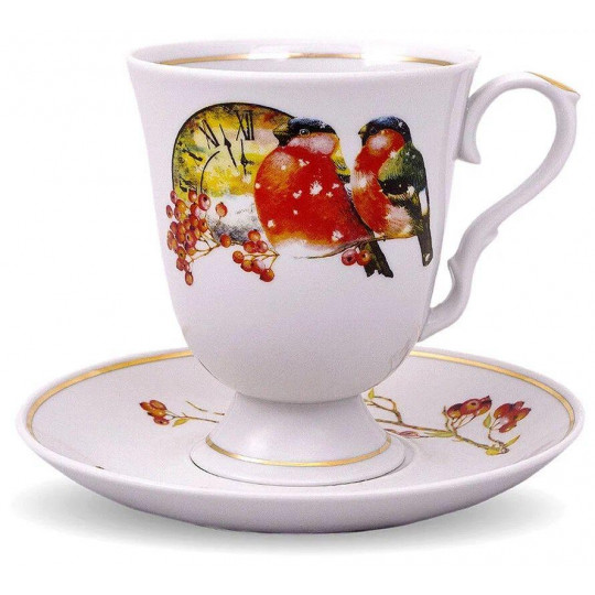 Бокал фарфор с блюдцем 600мл классический снегири Дулевский фарфор