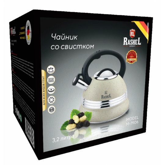 Чайник со свистком изготовлен из высококачественной нержавеющей стали. Нержавеющая сталь обладает высокой устойчивостью к коррозии, не окисляется и не впитывает посторонние запахи.