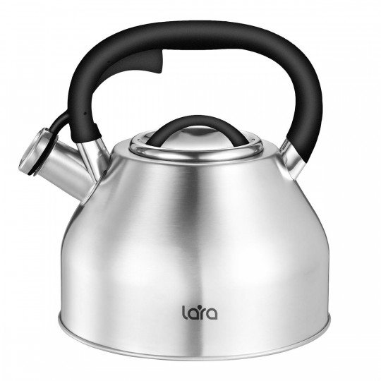 Чайник LARA LR00-90 – современный вместительный чайник со свистком. Выполнен из пищевой нержавеющей стали с матовой полировкой и отличается повышенной прочностью и надежностью. Эргономичная ручка из нейлона не нагревается, обеспечивая комфорт и безопасность во время использования. Свисток с кнопочным механизмом оповестит о закипании воды. Широкая горловина для удобного залива воды. Индукционное капсулированное дно подходит для всех типов плит. Аккуратная и стильная форма чайника впишется в любой современный кухонный интерьер.