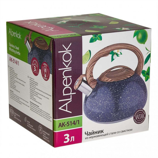 Чайник Alpenkok AK-514/1 объемом 3 литра, изготовленный из высококачественной нержавеющей стали толщиной 0,6 мм, значительно ускорит процесс приготовления ваших любимых напитков. Стильное серое гранитное покрытие не только прекрасно выглядит, но и обеспечивает равномерное распределение тепла, предотвращая пригорание/