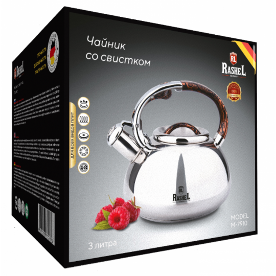 Чайник нержавеющая сталь 3.0л со свистком для всех видов плит 7910 Rashel - купить в универсальном интернет-магазине НОХТ