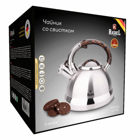 Чайник со свистком изготовлен из высококачественной нержавеющей стали. Нержавеющая сталь обладает высокой устойчивостью к коррозии, не окисляется и не впитывает посторонние запахи.