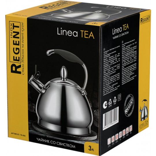 Чайники Linea TEA выполнены из высококачественной нержавеющей стали. Многослойное капсулированное дно обеспечивает быстрый нагрев и не деформируется. Плотно прилегающая крышка защитит от ожогов, а встроенный свисток вовремя оповестит Вас о закипании воды.