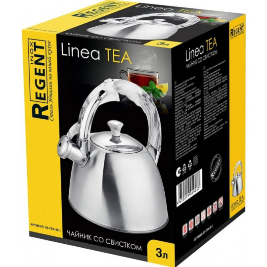 Чайник нержавеющая сталь 3 л со свистком, глянцевый, ручка Soft-Touch, индукция, Linea Tea