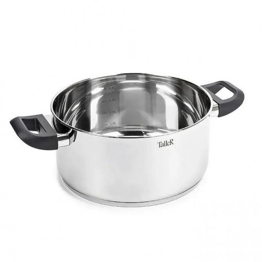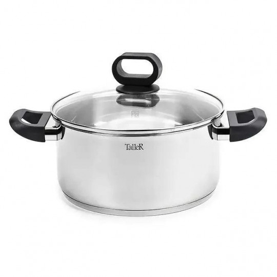 Кастрюля из нержавеющей стали TalleR TR-11008 «Тиана» 1,5 л Размеры: 16 х 8,5 см (диаметр х высота без крышки). Кастрюля выполнена из нержавеющей стали 18/10. Капсулированное дно для лучшего распределения тепла. Толстое дно - 4,5 мм. Полировка внешняя - зеркальная, внутренняя - зеркальная. Есть отметки литража. Крышка из жаропрочного стекла со стальным ободом с отверстием для выхода пара. Бакелитовые ручки устойчивы к нагреванию. Ручки на кастрюле и на крышке с удобными отверстиями для захвата. Подходит для всех типов плит (включая индукционную). Нельзя использовать в духовом шкафу. Пригодна для мойки в посудомоечной машине.