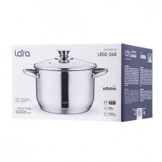 Кастрюли LARA серии «Афина» – посуда премиум-класса для ценителей качества и надежности. Кастрюли выполнены из нержавеющей стали и отличаются высокой прочностью. Толстое пятислойное капсулированное дно обеспечивает равномерный нагрев и длительное сохранение тепла, предотвращая подгорание пищи. Все кастрюли оснащены крышкой из жаропрочного стекла. Наши изделия подходят для всех видов плит, включая индукционные, и совмещают в себе современный дизайн и удобство эксплуатации. Для вашего комфорта в линейке представлены модели разных объемов, собирайте свой комплект и наслаждайтесь готовкой с посудой Lara.