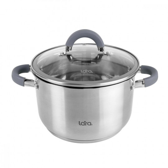Кастрюли LARA серии «Калипсо» – это воплощение современного стиля и высокого качества исполнения. Кастрюли выполнены из нержавеющей стали и отличаются высокой прочностью. Толстое пятислойное капсулированное дно обеспечивает равномерный нагрев и длительное сохранение тепла, предотвращая подгорание пищи. Все кастрюли оснащены крышкой из жаропрочного стекла. Наши изделия подходят для всех видов плит, включая индукционные. Для вашего комфорта предусмотрены ненагревающиеся ручки с силиконовым покрытием. В линейке представлены модели разных объемов, собирайте свой комплект и наслаждайтесь готовкой с посудой Lara.