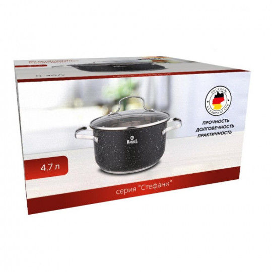 Кастрюли торговой марки RASHEL серии Стефани выполнены из высококачественной нержавеющей стали. На корпус кастрюли нанесено антипригарное гранитное покрытие. Кастрюли удобны в использовании, за ними легко и просто ухаживать. Многослойное капсульное дно равномерно распределяет тепло и долгое время сохраняет достигнутую температуру, тем самым обеспечивает равномерный нагрев и равномерную подачу тепла во внутрь кастрюли.