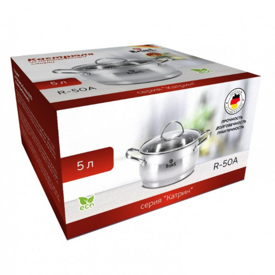 Кастрюли торговой марки RASHEL выполнены из высококачественной нержавеющей стали. Кастрюли удобны в использовании, за ними легко и просто ухаживать. Многослойное капсульное дно равномерно распределяет тепло и долгое время сохраняет достигнутую температуру, тем самым обеспечивает равномерный нагрев и равномерную подачу тепла во внутрь кастрюли.