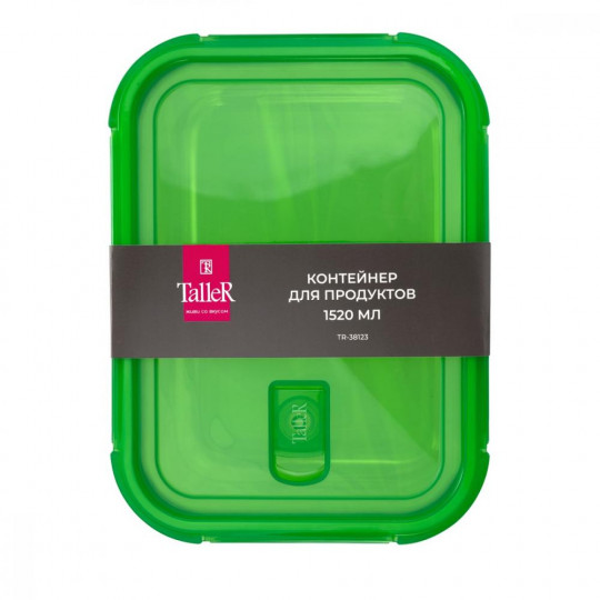Контейнер пищевой TalleR TR-38123 1520 мл 23*17,5*7,6 см выполнен из жаропрочного боросиликатного стекла и безопасного пищевого пластика. Крышка со съемным силиконовым уплотнительным кольцом. Четыре замка для максимально плотного закрытия крышки. Регулируемый воздушный клапан дольше сохраняет свежесть продуктов. Температурный режим для контейнера: до 400°C. Температурный режим для крышки -20°C ~ +90°C. Специальные выступы на крышке помогают защитить углы контейнера.