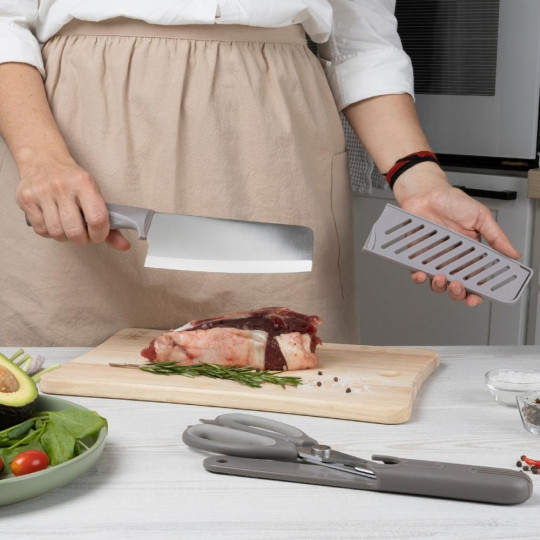 В комплекте с ножом идет чехол из твердого безопасного пластика (PP). Цвет чехла сочетается с цветом рукояти. Благодаря чехлу нож можно безопасно хранить, а также удобно взять в поход, на пикник, дачу и др.