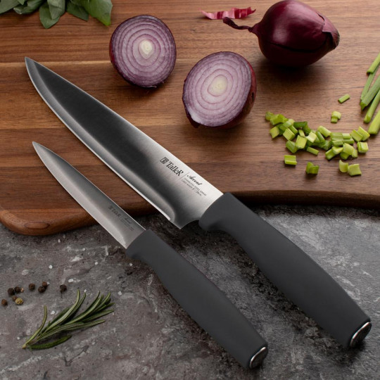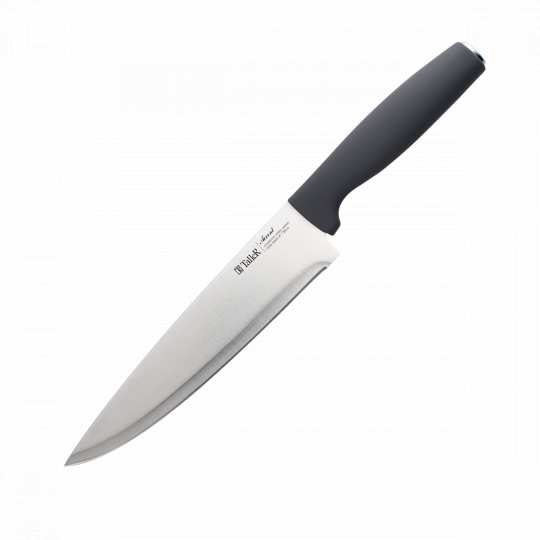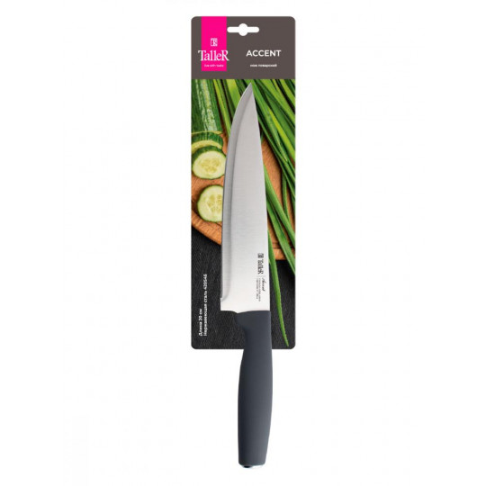 Нож поварской TalleR TR-22082 подходит для нарезки, шинковки, измельчения различных продуктов. Длина лезвия - 20 см. Толщина лезвия - 1,7 мм. Лезвие ножа сделано из высококачественной нержавеющей стали AISI 420S45. Ручка выполнена из ударопрочного пластика с приятным на ощупь покрытием soft-touch.