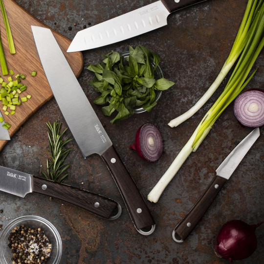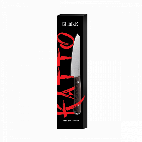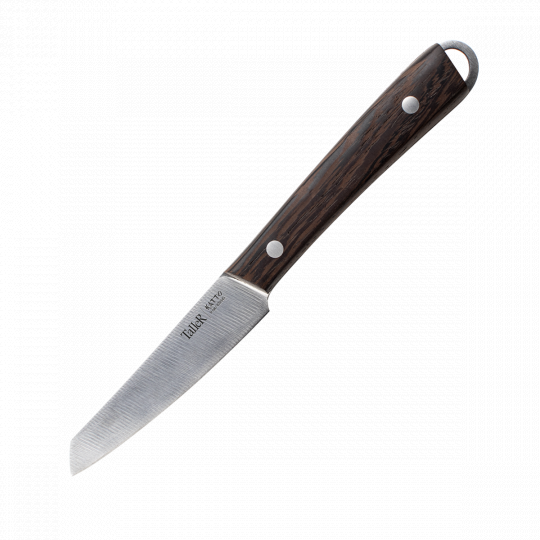 Нож для чистки TalleR TR-22057 Катто подходит для очистки, нарезки фруктов и овощей и других целей. Длина лезвия - 9 см, толщина лезвия - 1,6 мм. Лезвие ножа сделано из высококачественной нержавеющей стали AISI 420S45. Ручка выполнена из нержавеющей стали и дерева венге. Есть отверстие для подвешивания.