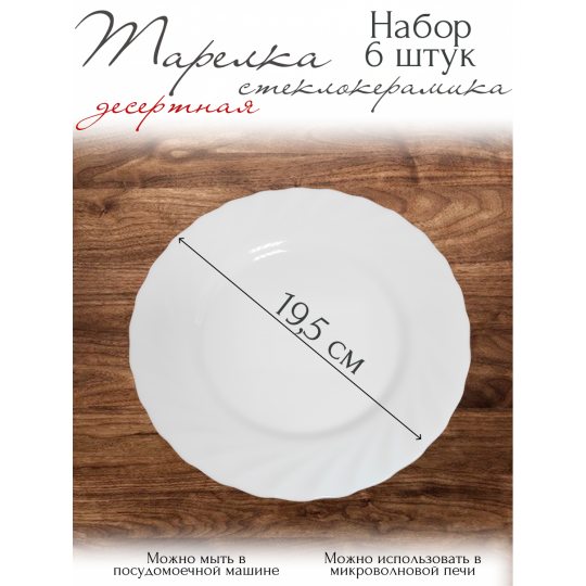 Набор тарелок на 6 персон Tidal White — это сочетание элегантности и практичности, которое украсит ваш стол и облегчит повседневную жизнь. Каждая тарелка десертная 19 см идеально подходит для подачи сладостей, фруктов, мини‑закусок или мороженого.