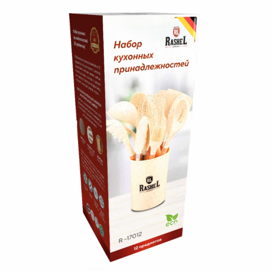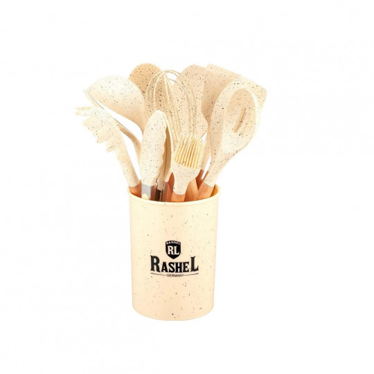 Набор кухонных принадлежностей ТМ Rashel станет незаменимым помощником для приготовлении пищи. Для изготовления набора используются только высококачественные материалы, поэтому в нем нет вредных токсинов. Рукоятка каждого предмета выполнена из натурального бамбука и имеет отверстие, для тех, кто предпочитает размещать приборы в подвешенном состоянии. Рабочая часть предметов изготовлена из высококачественного термостойкого пищевого силикона, его легко мыть в проточной воде. Силикон обладает антипригарным покрытием, которое не оставляет царапин на поверхности посуды и выдерживает температуру до +150 С.