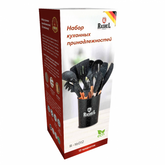 Набор кухонных принадлежностей 12 предметов черный мрамор Rashel - купить в универсальном интернет-магазине НОХТ
