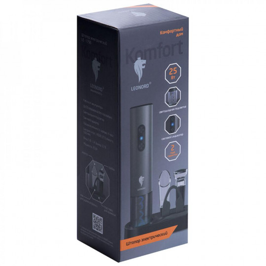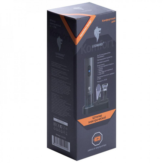 В комплекте: нож для фольги, насадка для розлива вина (аэратор), пробка для бутылки, подставка для хранения, шнур USB
