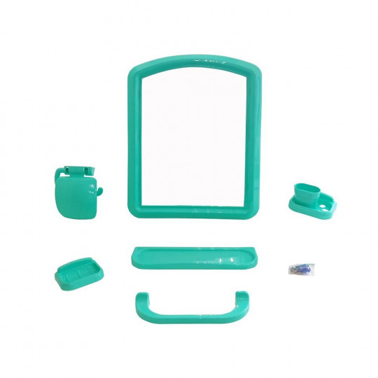 В состав наборов входят 7 предметов и крепеж, используя который можно самостоятельно без проблем повесить зеркало на стену и установить другие детали набора. Габариты коробки: 57х43х8 см.