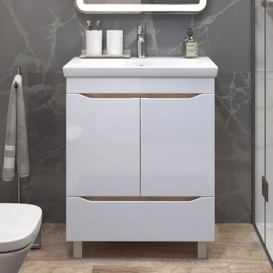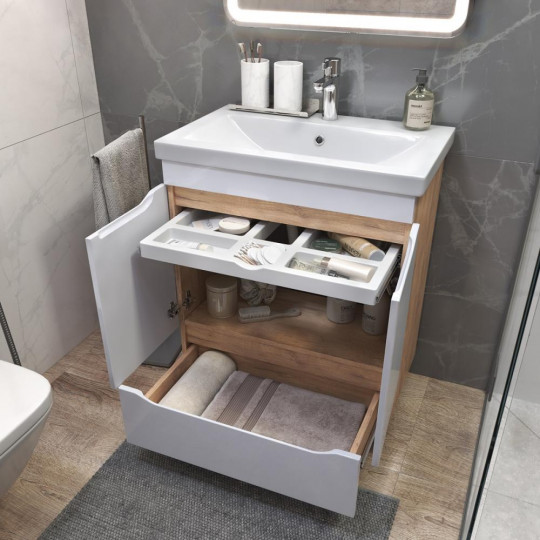 Оснащение: 2 дверцы, петли с механизмом доводчика, 1 ящик, выдвижной органайзер для мелочей, шариковые направляющие полного выдвижения, 2 опоры квадратные регулируемые; 2 кухонные опоры
