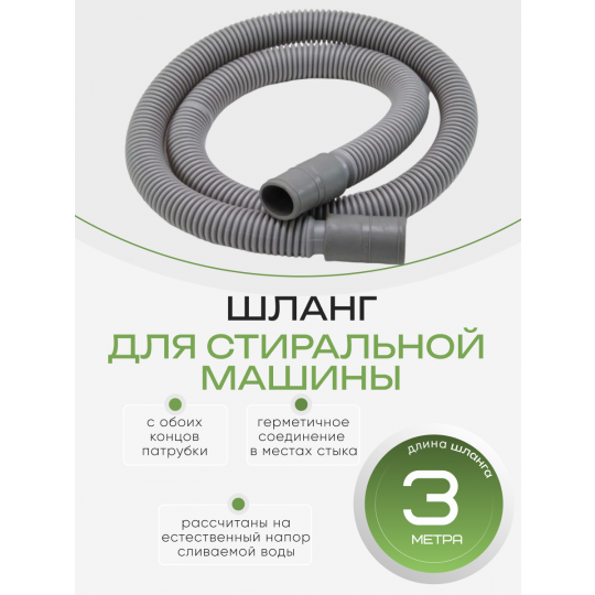 Шланг для стиральной машины сливной 3 м гарантирует стабильную работу вашей техники на протяжении долгого времени. Гарантия 1 год от производителя подтверждает надёжность и качество товара.