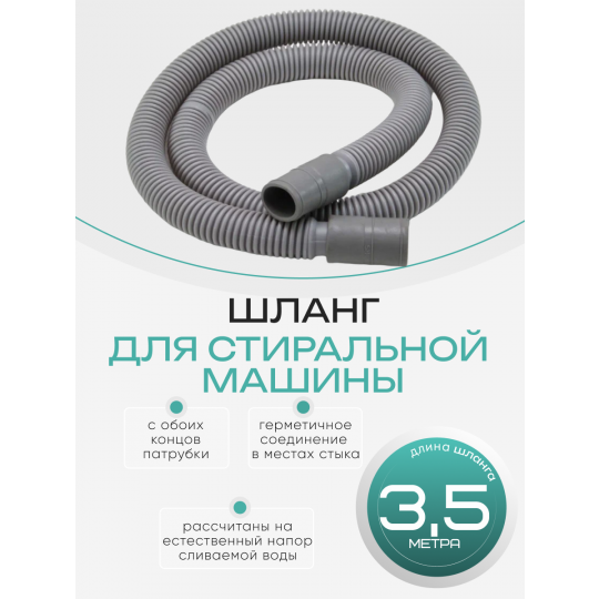 Водяной шланг для стиральной машины разработан с учетом современных стандартов качества и безопасности. Благодаря оптимальной длине, сливной шланг для стиральной машины 3,5 метра идеально подходит для подключения к любой системе канализации.